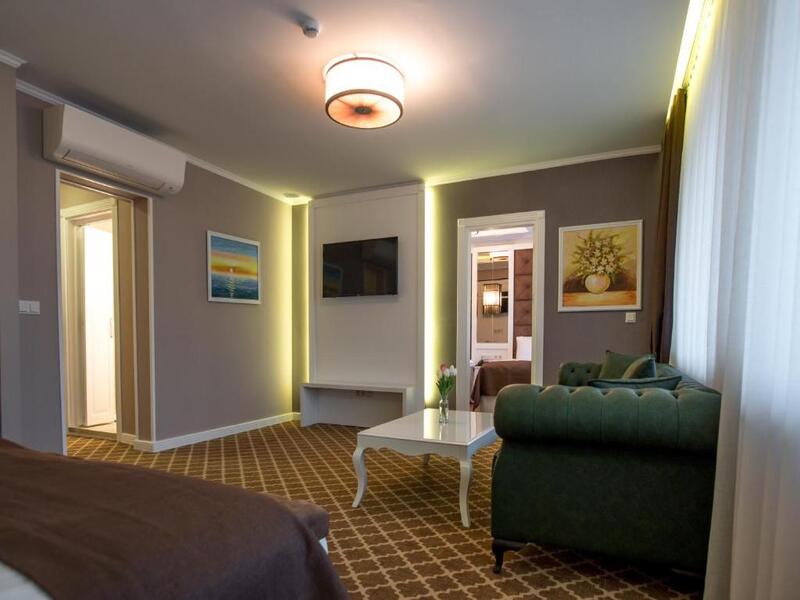 Суит с една спалня - простор и изисканост. Помещението включва голяма спалня и дневна зона, осигуряващи пълна свобода и комфорт. Дневната зона е обзаведена с мека мебел, подходяща за релакс или работа.