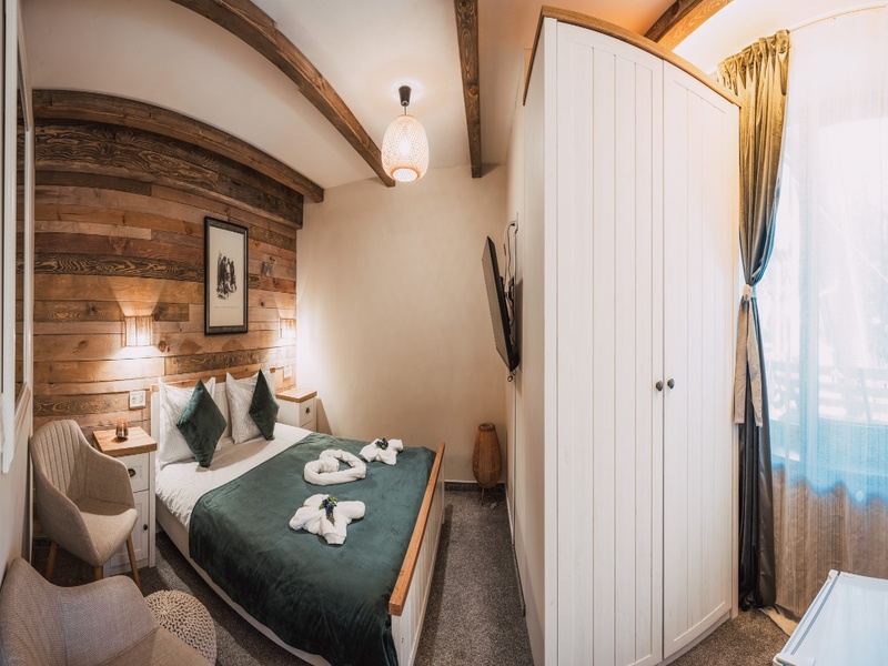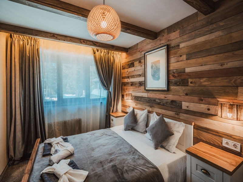 Двойна стая – 11-15 кв.м., максимално настаняване 2 възрастни; спалня или 2 отделни легла, гардероб, TV, хладилник/минибар, ел. кана, санитарен възел с душ, кърпи, халати, чехли, козметика, сейф, Wi-Fi, еднократно зареждане с вода, всекидневно зареждане с кафе, чай.