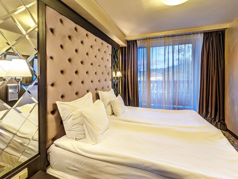 Стандартните двойни стаи са с панорамна гледка към града и боровата гора, заобикаляща хотела. Имат двойно легло или две единични легла, луксозен интериор в топли цветове. Максимално настаняване - 2-ма възрастни и едно дете.