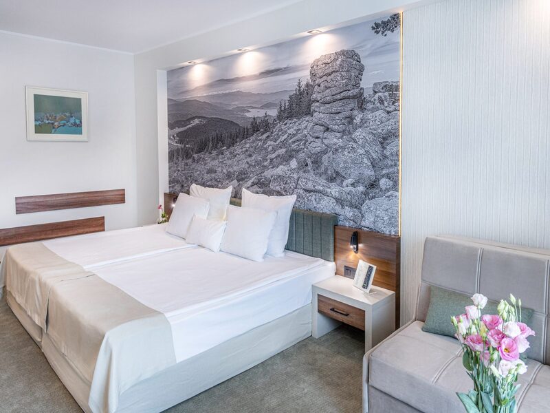Двойна стандартна стая – настаняване на 2 възрастни, може да се сложи бебешка кошарка.