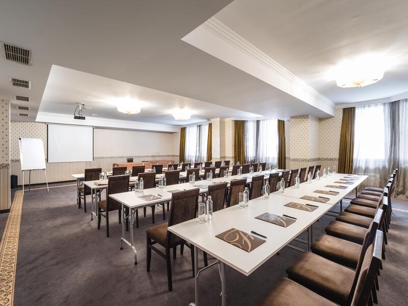 За корпоративни събития хотелът предлага две напълно оборудвани конферентни зали с капацитет до 70 места.