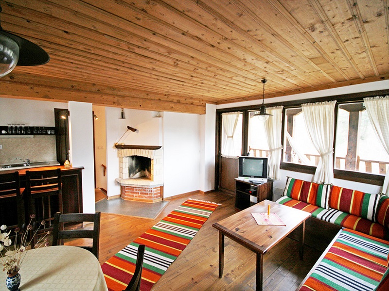 Elinovska house is perched on the top of the Turkish neighborhood - one of the highest places in the village and the view from it is magnificent. It is also a cultural monument. There is a large covered barbeque where you can relax and enjoy the beautiful view. And the luggage will arrive by lift. This is the smallest house: it consists of three penthouse apartments, each with a separate entrance. Both are in the large building and have a living room with sofa bed, kitchenette (equipped with refrigerator, microwave and kettle), dining area and toilet downstairs, large bedroom with bathroom - upstairs. In the former barn is located the third, so-called "newlyweds" penthouse - with a bedroom downstairs and a living room with a large veranda on the upper floor. This is the most spacious living room and in addition to couches, dining area and kitchenette there is an indoor fireplace.