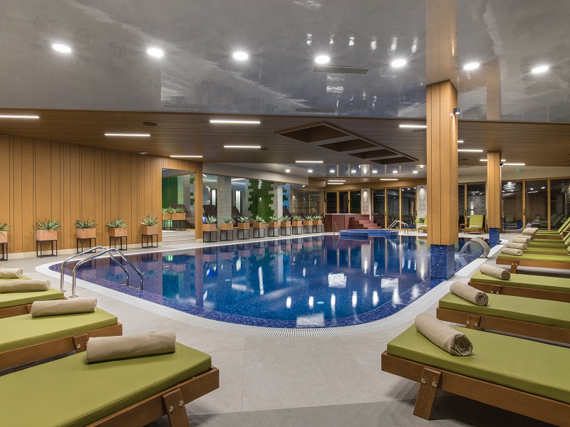 The thermal area offers a unique synergy between different areas to restore your vitality and delay the effects of time, release stress and tone the body: panoramic Finnish sauna, herbal sauna, salt room, steam bath, adventure showers, shock bucket, ice sector. Relaxation area with warm loungers and water beds